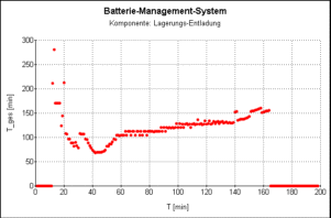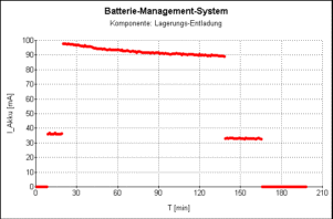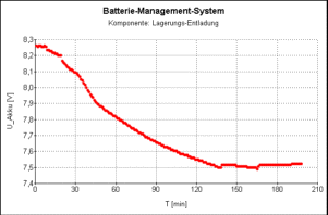 Stellvertretend für viele Teil-Funktionen eines Batterie-Management-Systems sollen im folgenden die Eigenschaften eines Geräts zur Lagerungs-Entladung beschrieben werden. Eigentlich ist die Lagerungs-Entladung ein unbequemer Vorgang, da hierbei auch Energie ungenutzt verheizt wird. Andererseits bietet sich hierbei die ideale Gelegenheit, Aussagen zur Zuverlässigkeit des Akkus zu sammeln. Anders als im Betrieb mit seinem immer leicht anders verlaufenden Ablauf verläuft der Entlade-Vorgang immer gleich ab. Durch diese Wiederholungen lassen sich sehr aussagekräftige Kriterien ableiten, mit denen schleichende Verschlechterungen erkennbar werden. Der Austausch gegen einen frischen Akku ist dann die günstigste Art, die angestrebte Zuverlässigkeit weiterhin sicherzustellen.